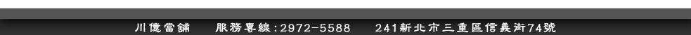 其實只要找對管道,即可順利解決所有困境,本公司經政府立案合法成立的當鋪就是不錯的紓困管道。在您急須週轉的關鍵時刻,台北川億當舖給您最專業最親切的服務,沒有銀行繁瑣的手續,給您快速、簡單便利、低利息的典當流程,成為您去煩解憂的好幫手。 |